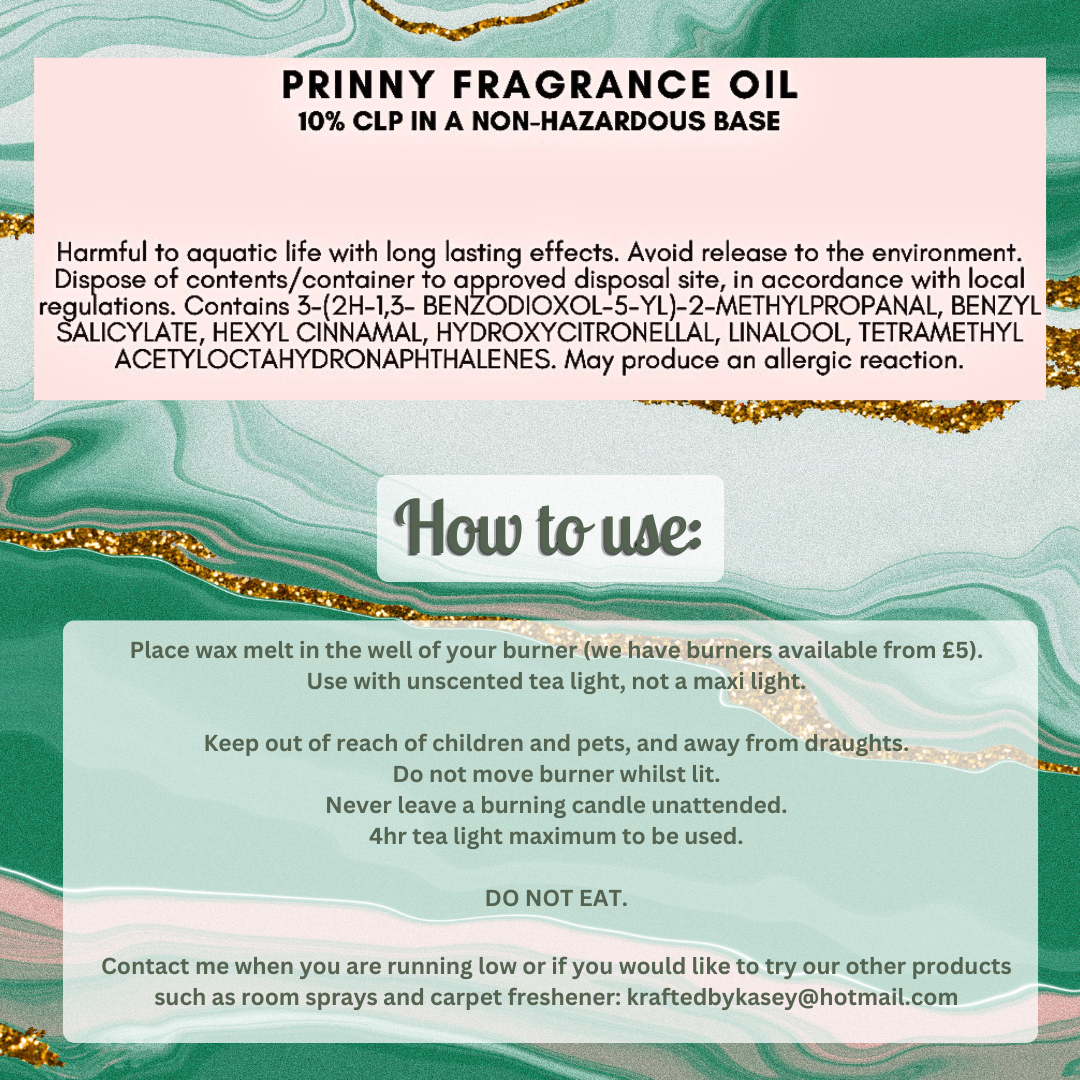 Full list of CLPs available on the Fragrance Oil CLP & Dupe Info page on this website. Individual wax melt bars will also have their CLP uploaded as an image. Please do not mix different scents of wax melts as this invalidates the CLP label.