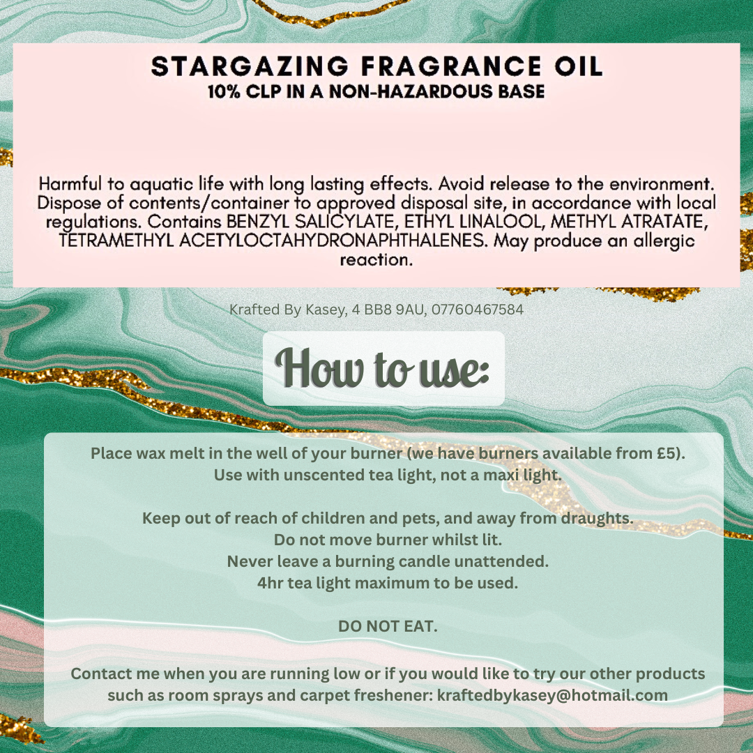 Full list of CLPs available on the Fragrance Oil CLP & Dupe Info page on this website. Individual wax melt bars will also have their CLP uploaded as an image. Please do not mix different scents of wax melts as this invalidates the CLP label.